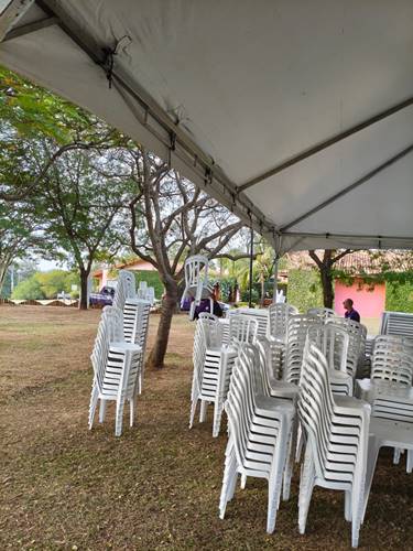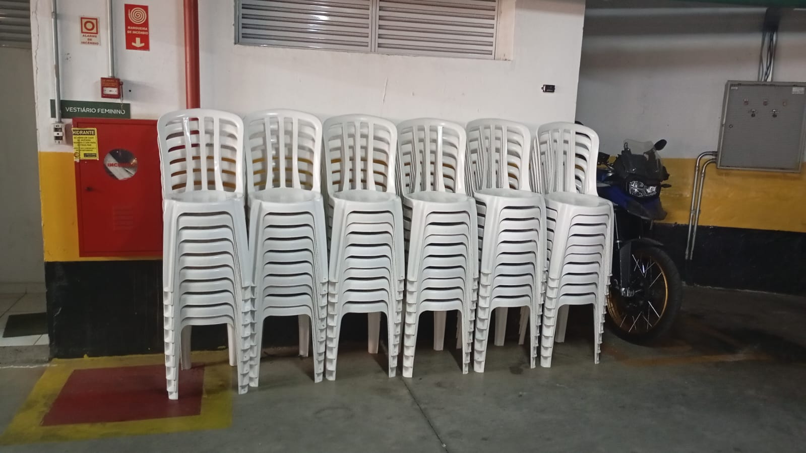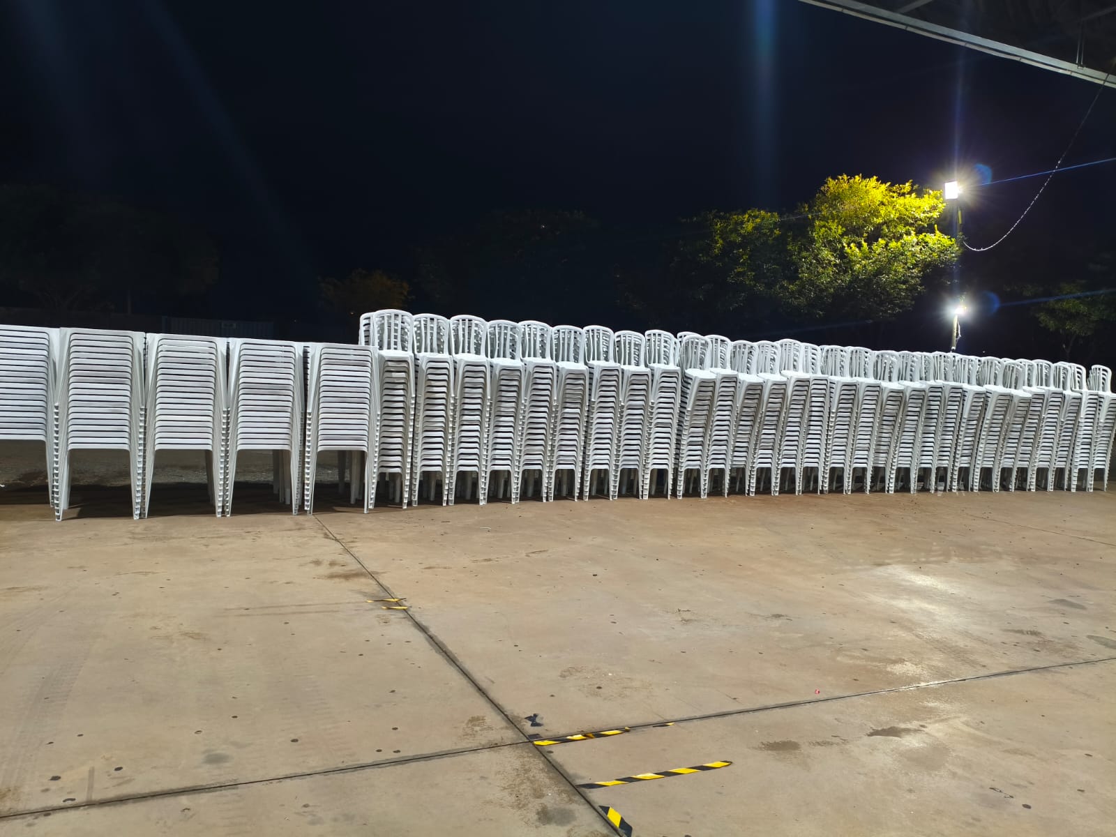Após cada uso, todos os itens passam por um processo de higienização e revisão de segurança, garantindo mesas e cadeiras limpas, resistentes e de alta qualidade para o próximo evento.